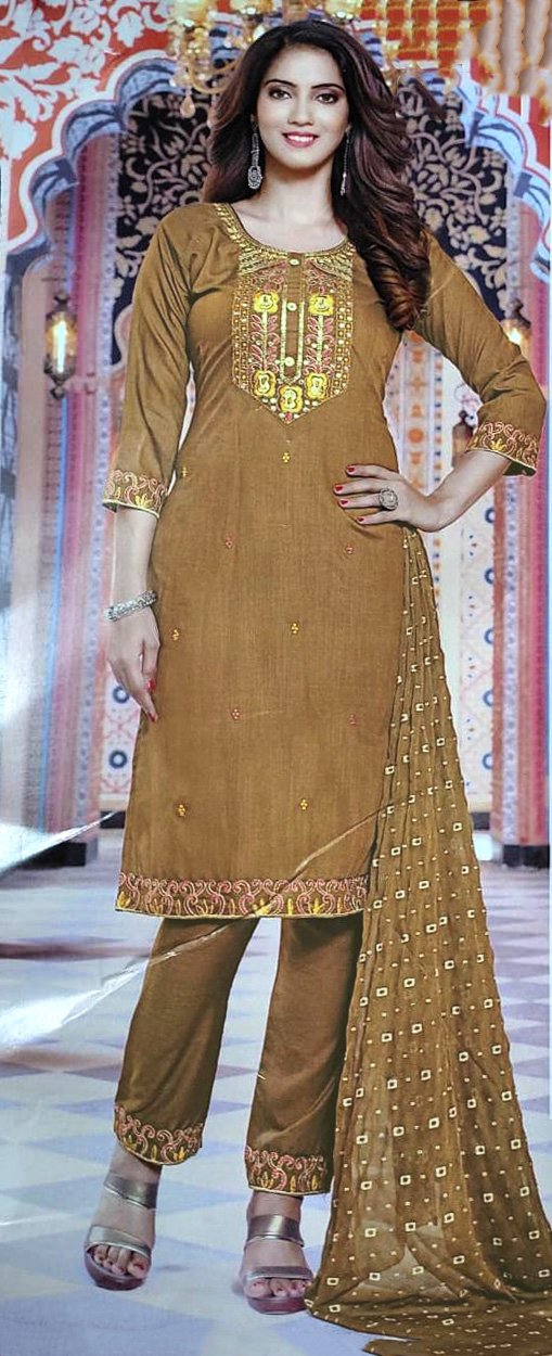 Cotton Flex Kurti Pent Pair With Dupatta (Wooden Yellow)